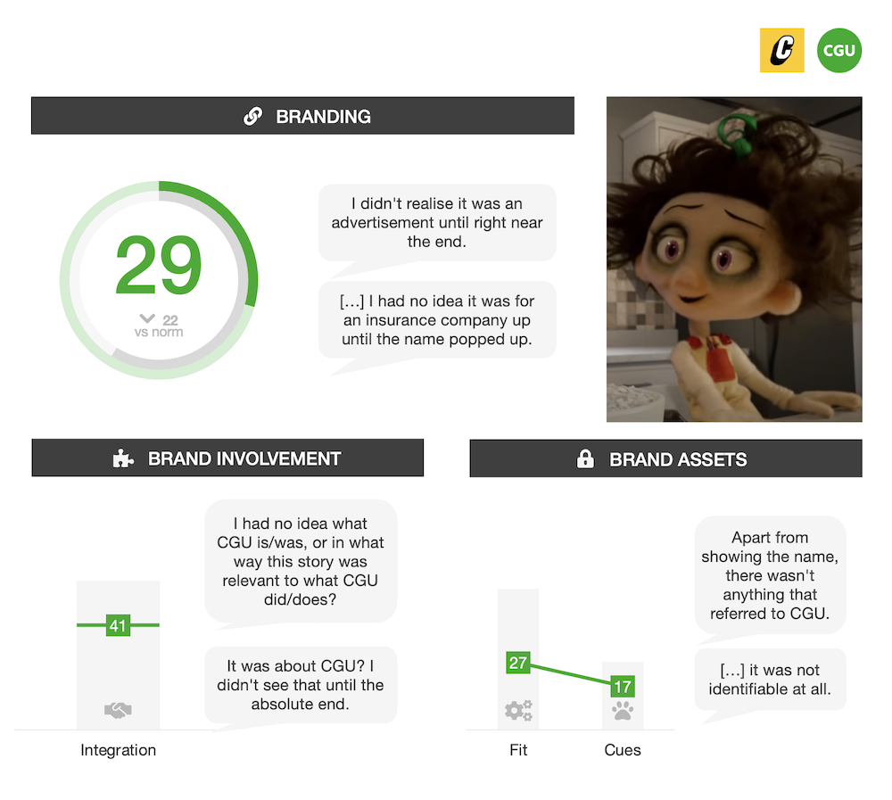 As a result, many people tuned out, struggling to understand what they were meant to take away from the ad, or even that there was a commercial intent behind it. With some live viewers initially attributing the ad to a scheduling error, it goes without saying that CGU’s role in the story was tenuous.