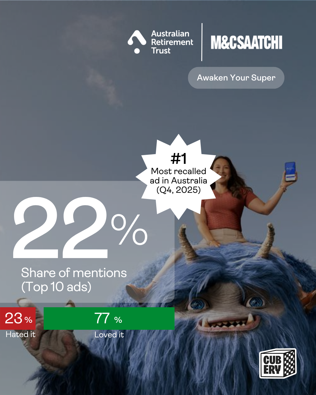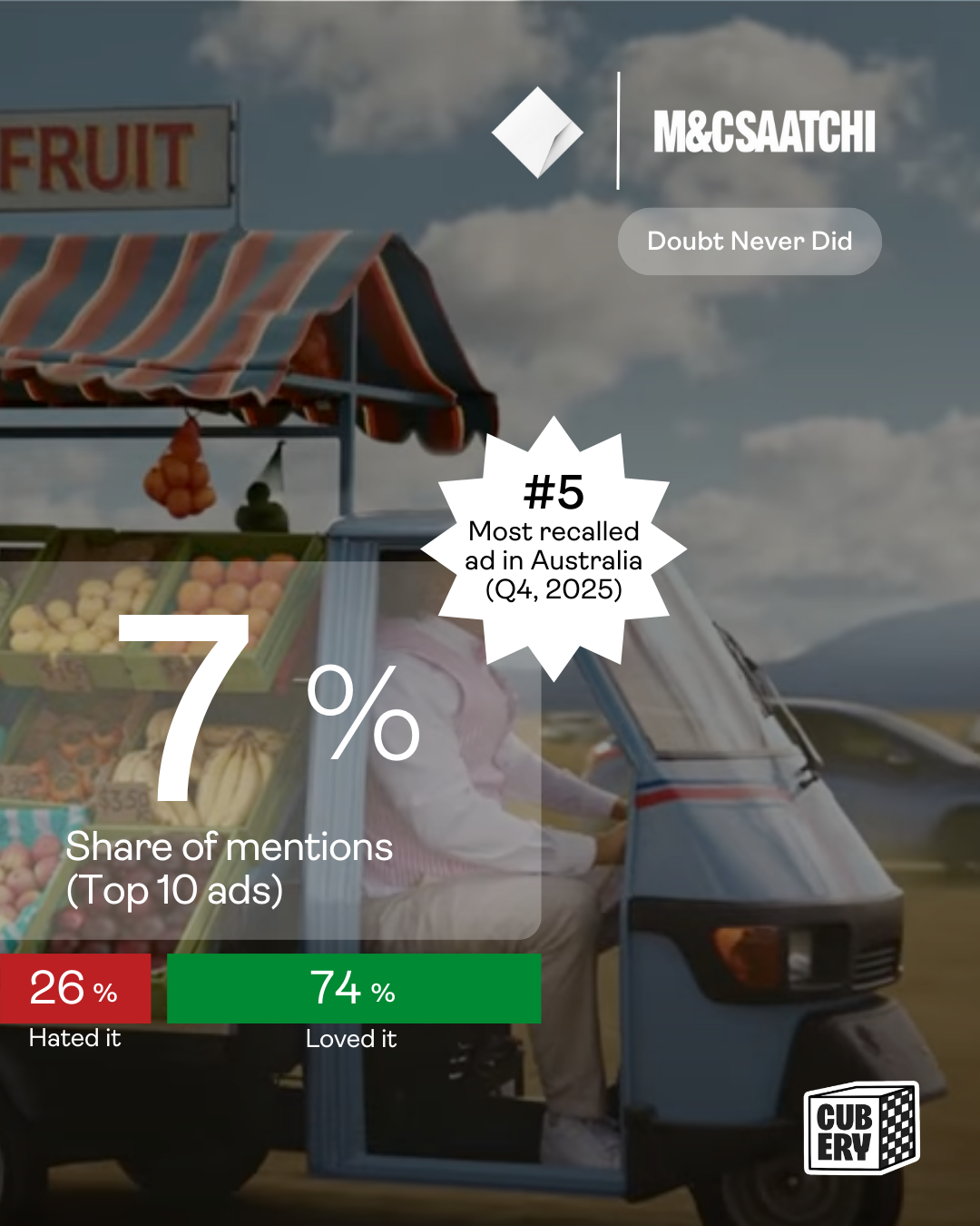 In a media landscape where standing out has never been harder, this study establishes a new barometer for marketers and agencies across Australia—revealing the country’s most memorable ads, as recalled by everyday consumers. To do this Cubery speaks to thousands of Aussies every month, asking a simple question: