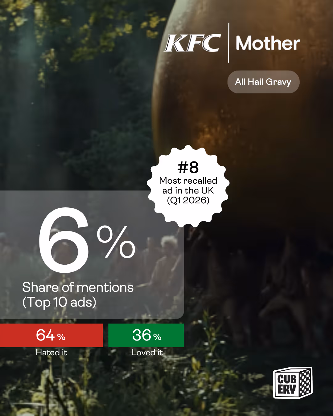 In a media landscape where standing out has never been harder, this study establishes a new barometer for marketers and agencies across the United Kingdom—revealing the country’s most memorable ads, as recalled by everyday consumers. To do this Cubery speaks to thousands of Brits every month, asking a simple question: